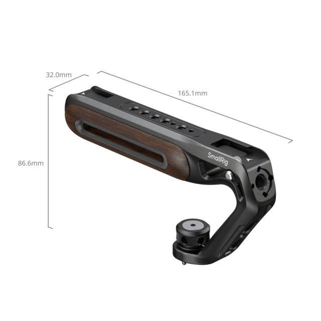 A SmallRig Wooden Top Handle a prémium szantálfát és a repülőgép-minőségű alumíniumot ötvözi a tartós, stabil kameraműködés érdekében. A 165 mm-es ergonomikus markolat kényelmes kezelhetőséget biztosít. A karcsú kapszulakialakítás megőrzi a professzionális esztétikát, miközben praktikus bővítési lehetőségeket kínál.
