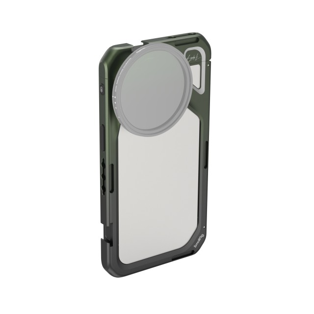 A SmallRig x Brandon Li Mobile Video Cage for iPhone 15 Pro Max Co-design Edition 4473 egy többfunkciós iPhone ketrec, amelyet kifejezetten iPhone 15 Pro Max készülékhez terveztek, és amely segít a kiváló minőségű videofelvételek, élő közvetítések és vlog felvételek készítésében. A kompakt ketrec súlya mindössze 85 g. Rendelkezik 1/4"-20-as menetes furatokkal és hideg cipőkkel a fogantyú, állvány, mikrofon, LED-videólámpa stb. rögzítéséhez, ami a vadonatúj gyorskioldós ökoszisztémával egyszerűbbé és gyorsabbá válik. Mindkét oldalon pántfuratok találhatók a 2 mm-nél kisebb átmérőjű pántokhoz. Lehetővé teszi egy M-bajonettes objektív vagy a hátlap cseréjével egy 17 mm / 37 mm-es menetes objektív, Moment T-sorozatú objektív rögzítését. Finoman kivájt, hogy teljes hozzáférést biztosítson az összes gombhoz, porthoz, a radar ultraszéles látószögű objektívhez és a MagSafe vezeték nélküli töltőhöz. A könnyen használható gyorszáras és gyorskioldós kialakítás biztonságosabb és stabilabb, megakadályozza a véletlen feloldást a rossz érintés miatt. A teljesen fémből készült teljes ketrec beépített párnákkal is rendelkezik az esetleges ütések és karcolások elkerülése érdekében. A ketrec felhelyezése nem akadályozná a vízszintes vagy függőleges fényképezésben.