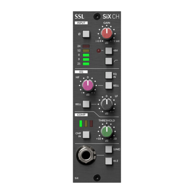 A SiX CH egy egyszélességű 500-as sorozatú csatornasáv, amely az SSL SiX konzoljának SuperAnalogue csatornafeldolgozási funkcióit használja, beleértve a mikrofon-előzetes, az alacsony és magas frekvenciájú EQ-t és az egygombos kompresszort.