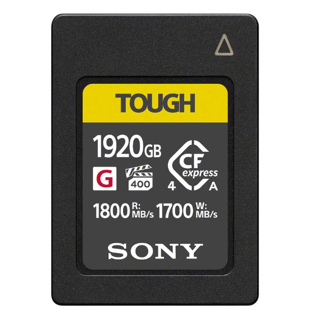 A Sony Tough CFexpress Type A 1920 GB-os VPG400 memóriakártya akár 1800 MB/s olvasási és 1700 MB/s írási sebességgel rendkívül gyors teljesítményt nyújt, és professzionális 4K/120p videofelvételekhez, valamint nagy sebességű fotózási feladatokhoz lett kifejlesztve.