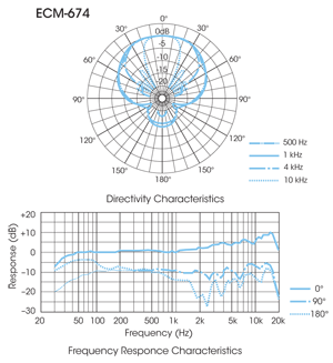 ECM-674 elektret kondenzátoros irányított (szuperkardioid) mikrofon kettős tápegységgel (fantom vagy AA)