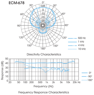 Az ECM-678 elektret kondenzátoros sörétes (szuperkardioid) mikrofon széles hangtartományú és nagyon jó érzékenységű.