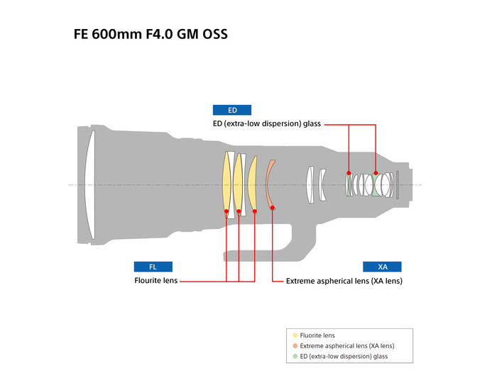Fejlett optikai felépítése három fluorit elemet, két ED elemet és egy XA (extrém aszférikus) elemet tartalmaz, amely kivételes élességet, tisztaságot és minimális kromatikus aberrációt biztosít a képmező egészén. A Sony Nano AR bevonata tovább csökkenti a tükröződéseket és a szellemképeket, biztosítva a magas kontrasztot és a színpontosságot még zord fényviszonyok között is. A 11 lamellás kör alakú rekesz sima, krémes bokeh-hatást eredményez, amely fokozza a téma kiemelését.