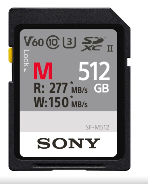 A Sony SF-M sorozatú 512 GB-os UHS-II SDXC memóriakártyát azoknak a fotósoknak és videósoknak fejlesztették ki, akik gyorsaságot, megbízhatóságot és kiváló teljesítményt igényelnek. A nagy, 512 GB-os kapacitásnak és az UHS-II interfész támogatásának köszönhetően ez a kártya ideális nagy felbontású képek, RAW-fájlok, valamint kiváló minőségű videóformátumok – többek között 4K, 3D, HFR és Full HD – rögzítéséhez.
