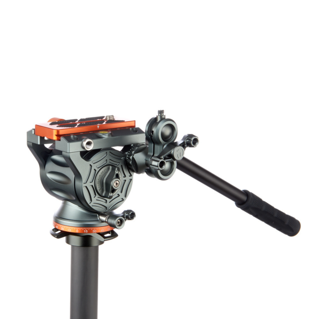 Ezenkívül a fej állítható billenő mechanizmussal rendelkezik, amely lehetővé teszi a zökkenőmentes mozgást. Ezt a mechanizmust aztán vagy egyenesen előre, vagy a mellékelt pásztázó karral lehet vezérelni, amely a fej mindkét oldalára felszerelhető, így jobb- és balkezes tartás is lehetséges. A fej a billenőmechanizmus súrlódásvezérlésével, a jobb fogás érdekében gumírozott rögzítőgombbal, karhatással és egy 361°-kal elforgatható, gumírozott talppal rendelkezik, amely szükség szerint rögzíthető. Ezáltal a fej vízszintes és függőleges fotózáshoz egyaránt ideális, amit különösen értékelni fog, ha különböző épületeket, az eget vagy egy nagy embercsoportot fényképez.