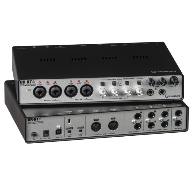 A Steinberg UR-RT4 egy audiointerfész 6 bemenettel és 4 kimenettel, MIDI csatlakozási lehetőséggel és Rupert Neve Designs transzformátorokkal az első négy bemeneten. A kiváló minőségű D-PRE előerősítők és a Rupert Neve Designs transzformátorok kombinálásával az UR-RT garantálja a harmonikus frekvenciákban gazdag, zenei és kifejezőbb hangszínt, amely előnyös például az ének, az akusztikus gitár és más, széles dinamikatartományú hangszerek számára.