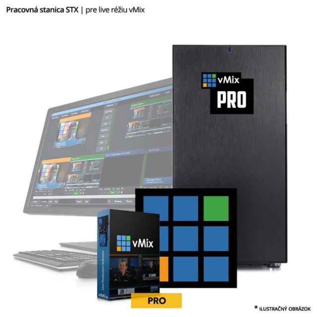 Professzionális STX munkaállomás, amelyet a vMIX szoftver overhead futtatására optimalizáltak. vMIX szoftver csak a vMIX HD, vMIX 4K és vMIX PRO verziókban található.