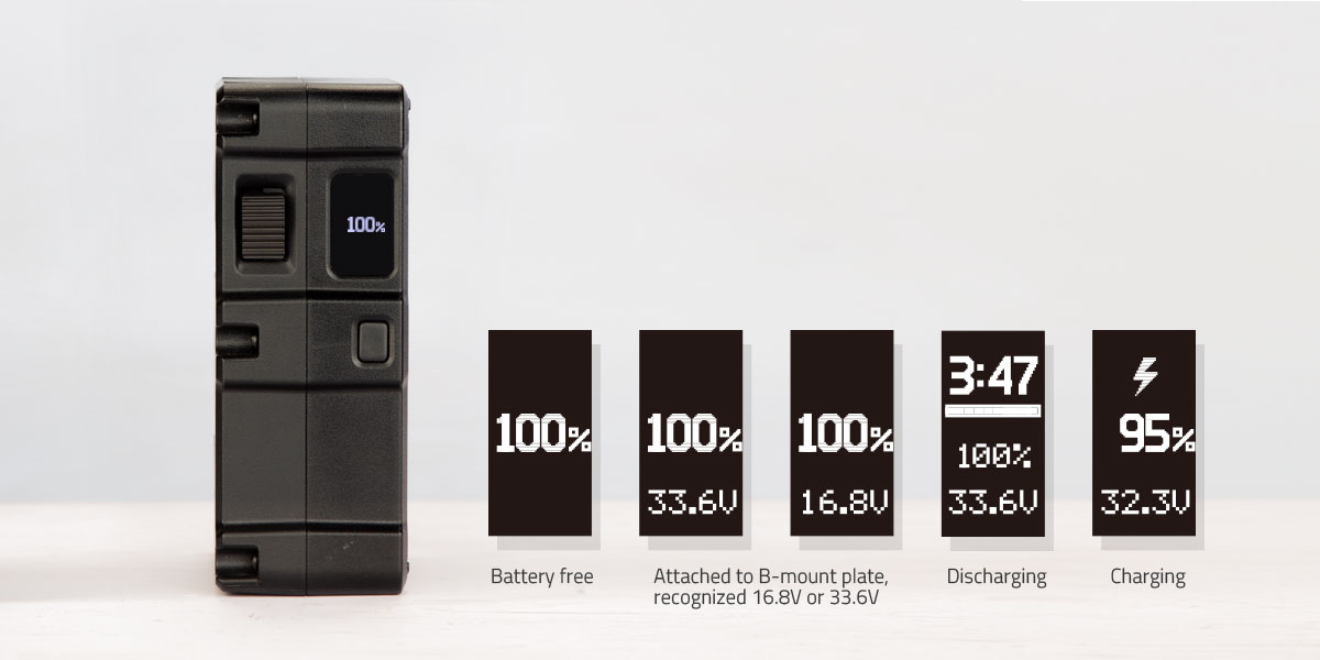 A BIVO-200 akkumulátor OLED képernyővel rendelkezik az akkumulátor állapotának és teljesítményinformációinak megjelenítéséhez, beleértve a kimeneti feszültséget, a teljesítmény százalékos arányát, a hátralévő üzemidőt és a védelmi figyelmeztető kódot, ha bármilyen rendelleneset észlel.