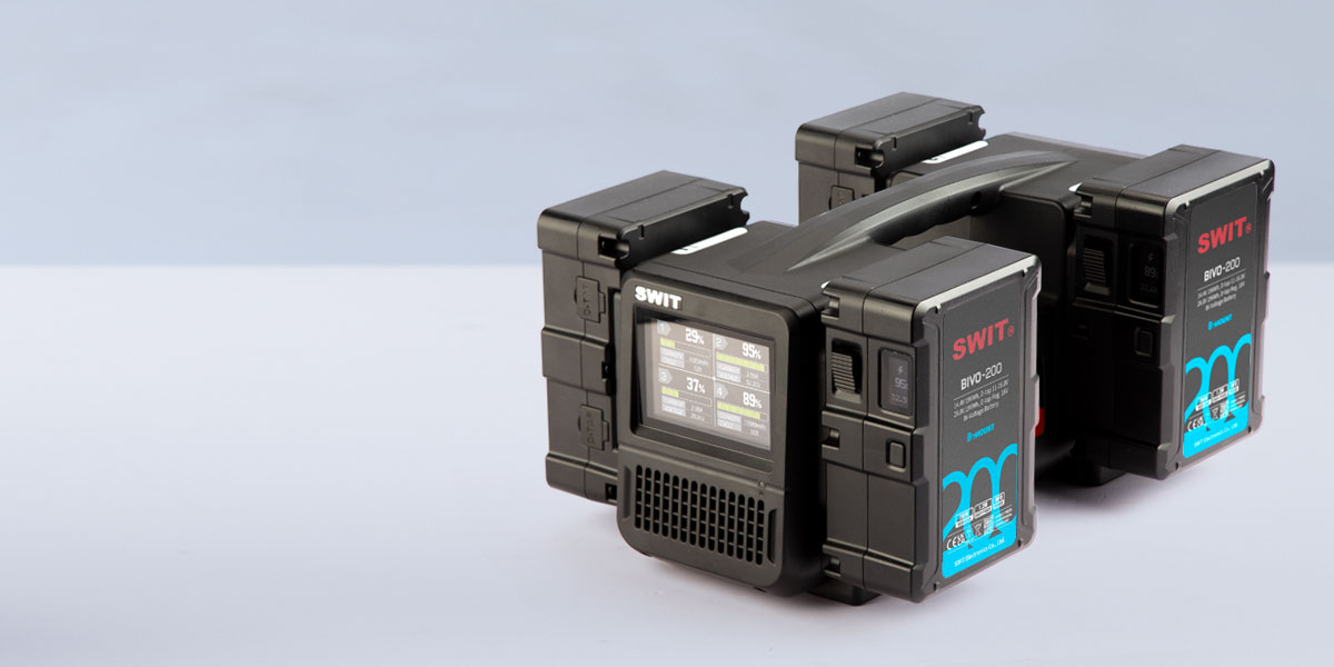 A SWIT PC-P461B B-mount töltővel egyszerre 4x BIVO-200 akkumulátort tölthet, 33,6V 3A, 100W-os szupergyors töltéssel. A töltő kb. 3 órát vesz igénybe a 4x BIVO-200 akkumulátorok teljes feltöltéséhez.