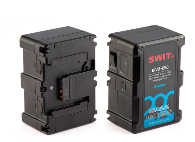 A SWIT BIVO-290 kétfeszültségű B-mount akkumulátor nagy kapacitású, 290 Wh teljesítményt biztosít intelligens 14,4 V / 28,8 V automatikus feszültségváltással, így ideális ARRI, BMD és más kompatibilis filmkamerákhoz és filmes felszerelésekhez. Nagy terhelésű teljesítményre tervezve, biztonságos, megbízható áramellátást biztosít igényes produkciós környezetben.