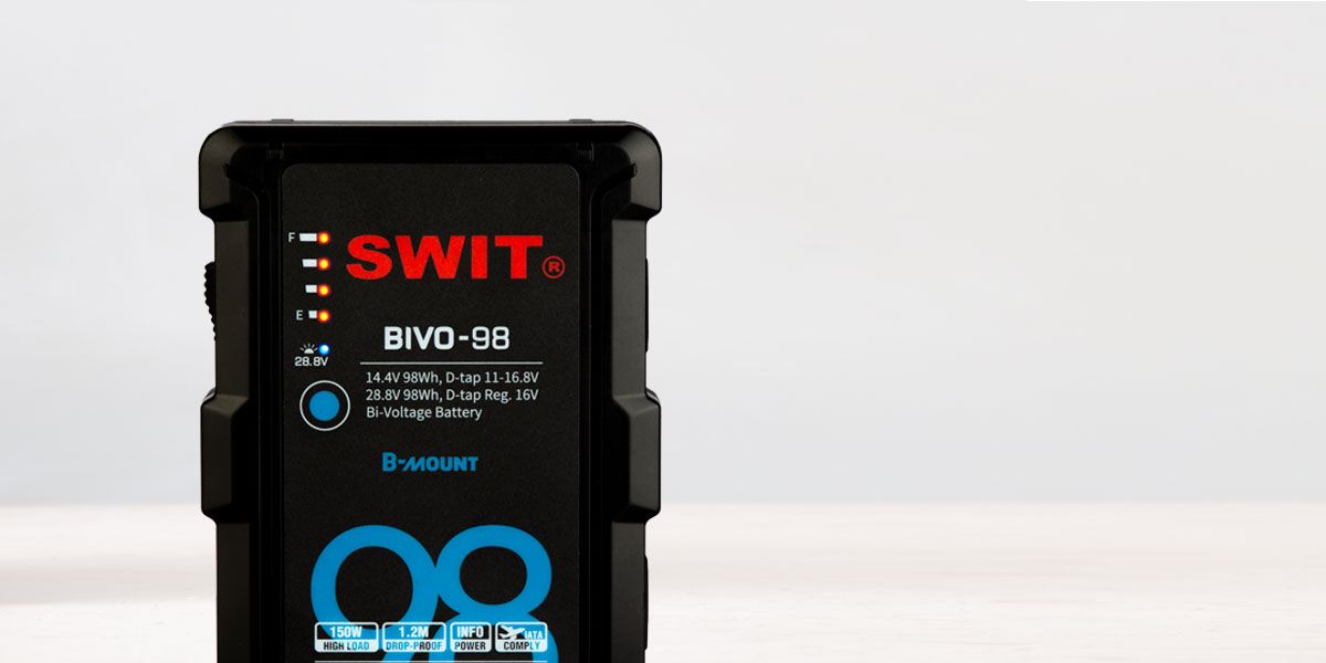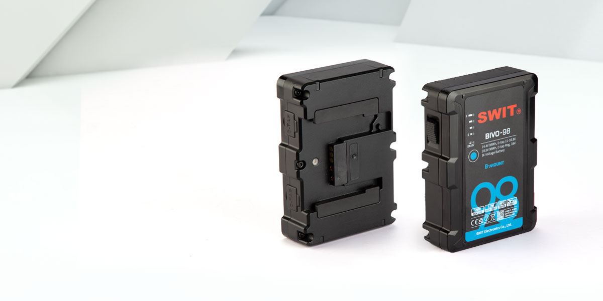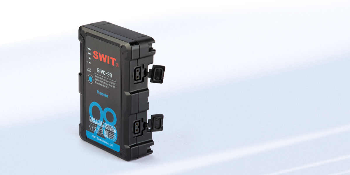 A BIVO-98 egy 14,4V(11-16,8V) és 28,8V (22-33,6V) Bi-voltage B-mount akkumulátor, ARRI kamerákhoz és különböző, normál feszültségű kamerákkal és filmes eszközökkel kompatibilis. Az akkumulátor felismeri a B-mount lemez ID pin ellenállásának értékét, majd 14,4V vagy 28,8V-ot ad ki, visszaélési kockázatok nélkül.