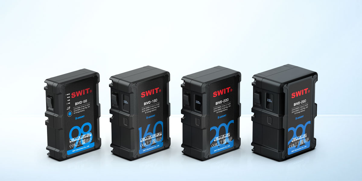 A BIVO sorozat Bi-voltage B-mount akkumulátor famaily 98Wh, 160Wh, 196Wh, 290Wh, a különböző méretek és kapacitások, a stabilizátor kézi könnyű súly vagy hosszú távú energia kiválasztásához.