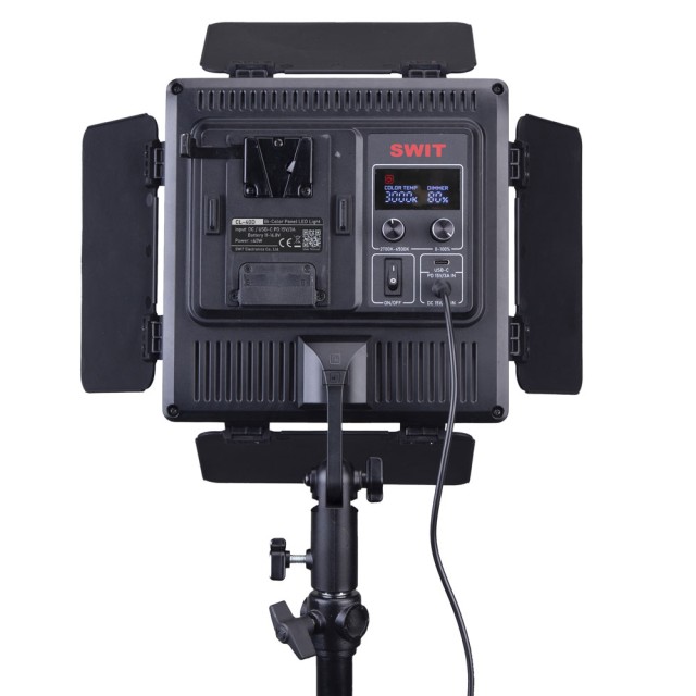 A kényelmes beállítás érdekében a CL-40D többféle tápellátást támogat: V-mount akkumulátor, USB-C és 15V DC. A csomag tartalmaz egy AC-DC adaptert.