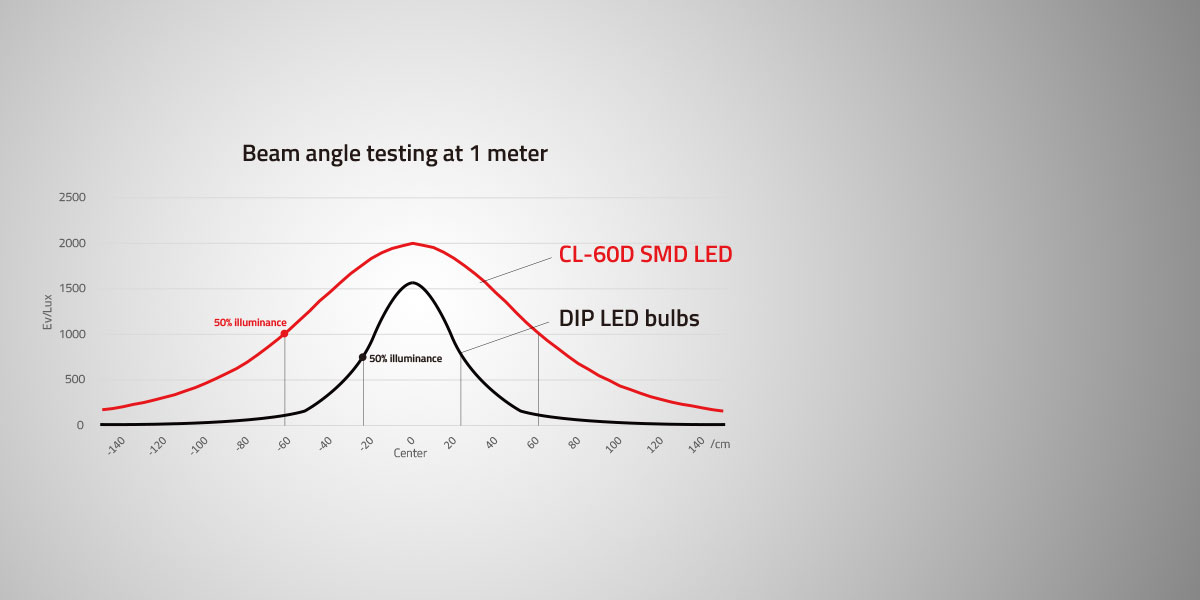 Az SMD LED-ek szélesebb sugárzási szöggel rendelkeznek, mint a hagyományos DIP LED-izzók. A középről a széléig egyenletesen elosztott területi fényt generálnak, ahelyett, hogy a középről a széléig hirtelen csökkenő, vakító fényfoltot hoznának létre.