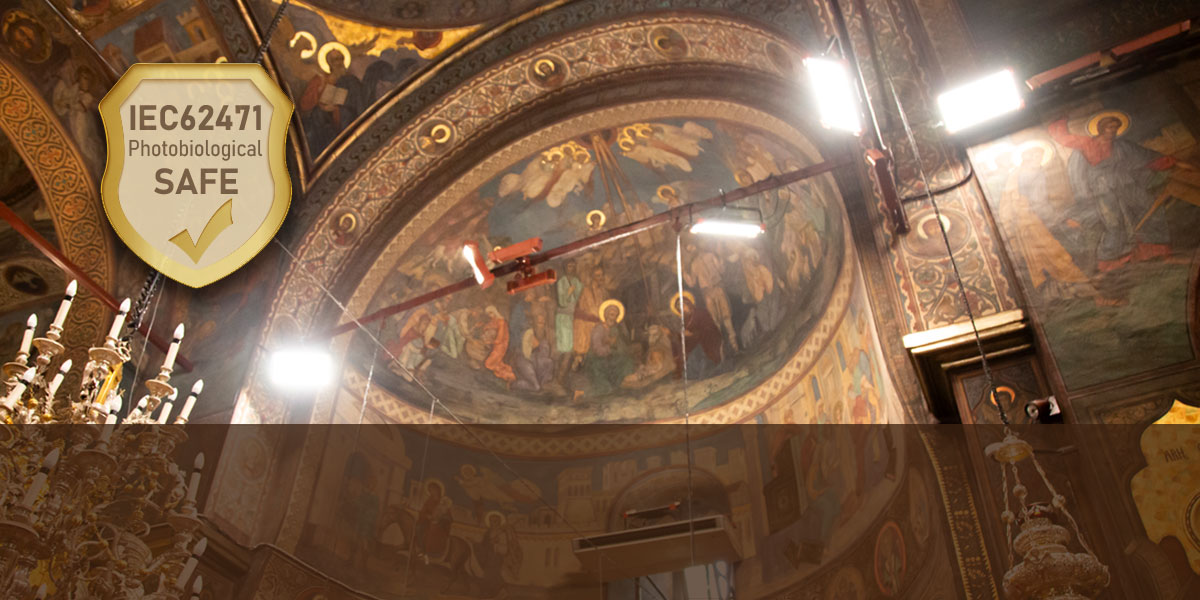 A fényt az IEC 62471:2008 szabvány szerint tesztelték és „mentes – nincs fotobiológiai veszély” minősítéssel látták el, ultraibolya sugárzás, nagy energiájú kék fény és villódzás kockázata nélkül. Bizonyos helyeken, például templomokban, múzeumokban és ősi épületekben, ez a világítótest hatékonyan megakadályozza a falfestmények elhalványulását és lepattogzását, így védve a kulturális örökséget.