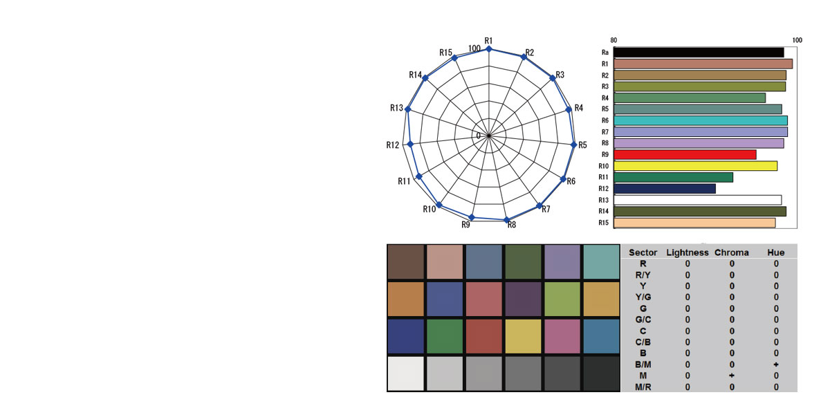 A CRI (színvisszaadási index) egy fényforrás azon képességét méri, hogy a természetes fényforráshoz képest mennyire hűen adja vissza a különböző tárgyak színeit. A TLCI (televíziós világítási konzisztencia index) pedig a kameraérzékelő színvisszaadási képességét méri. Maximális érték 100.