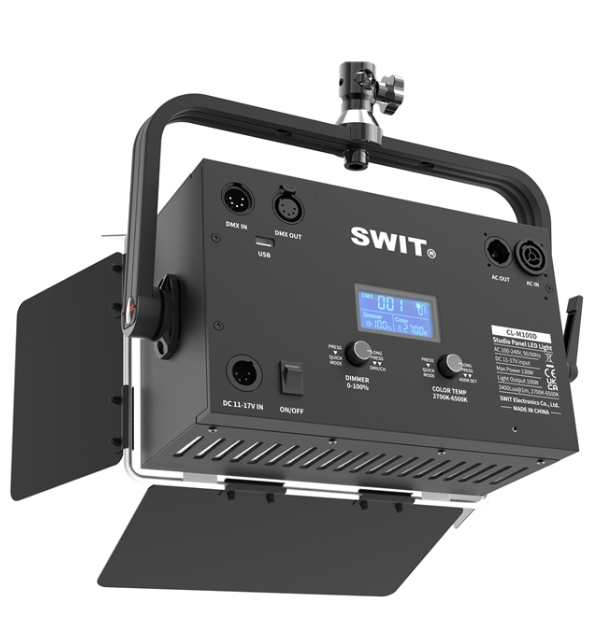 A SWIT CL-M100D egy 100 W-os, két színű mini SMD LED-panel, amely 3400 lux fényerőt biztosít 1 méter távolságban, 2700 K–6500 K állítható színnel, CRI 98 / TLCI 99 értékkel és csendes, ventilátor nélküli működéssel. Kompakt, félméretű kialakítása ideálisvá teszi műsorszolgáltató stúdiók, élő szórakoztató programok, színházak és alacsony mennyezetű filmstúdiók számára.