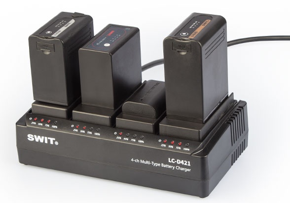 Az LC-D421 töltő tartalmazza magát a töltőt (hárfalak nélkül), amelyhez akár 4 különböző akkumulátorfoglalatot is választhat a Sony, Panasonic, JVC vagy Canon kamerákhoz. Kényelmes megoldás, ha több különböző akkumulátorral és eszközzel rendelkezik, mivel egy töltőt használhat szinte minden akkumulátorhoz és eszközhöz.
