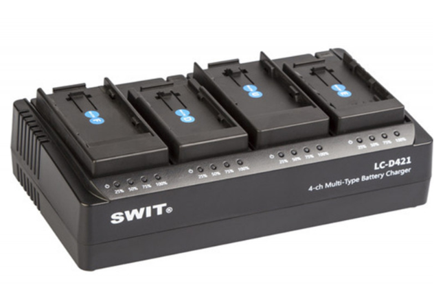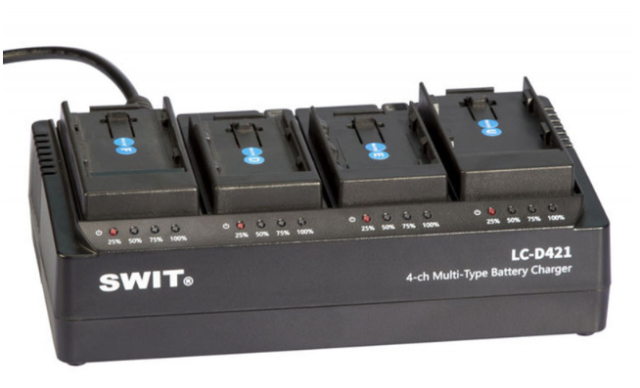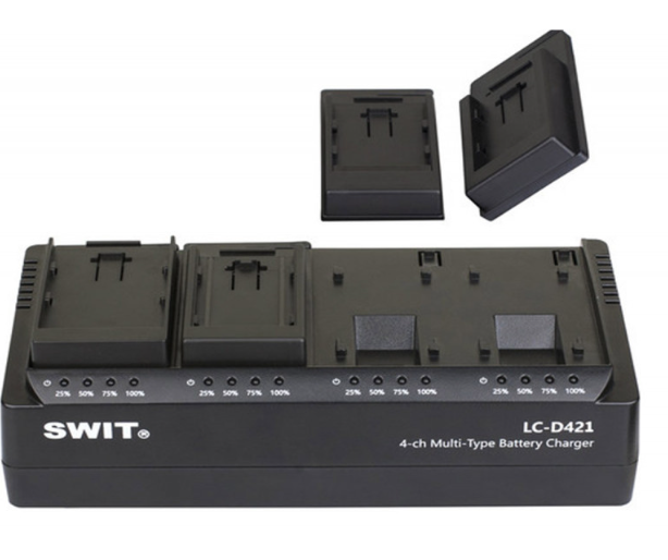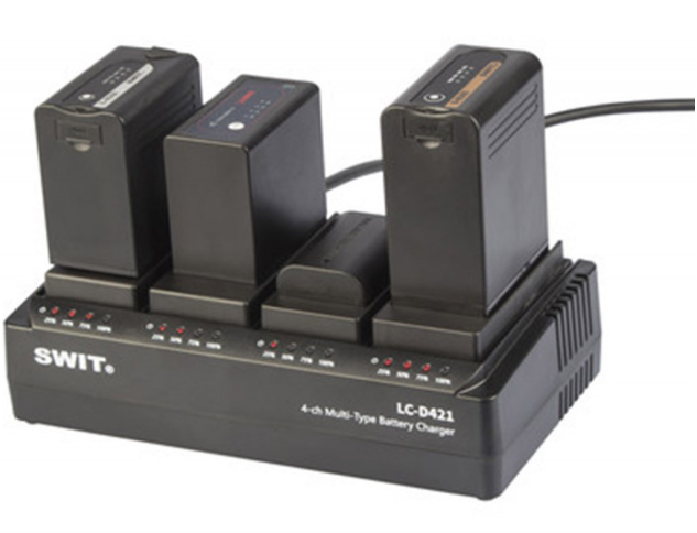 A SWIT LC-D421E KIT egy professzionális, 4 csatornás DV akkumulátortöltő, amely csatornánként 2 A-es áramerősséggel egyszerre akár négy akkumulátor töltésére is alkalmas. Négy Canon LP-E típusú (KA-C10E) rögzíthető lemezzel ellátva, cserélhető DV lemezeket támogat vegyes akkumulátortípusok töltéséhez, beleértve az F/U/E/D/C/V/I/B…