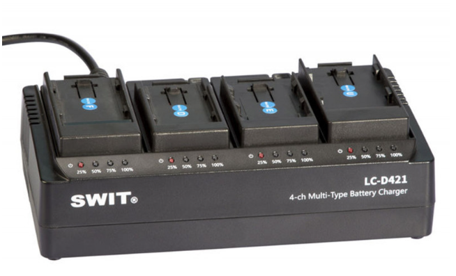 A SWIT LC-D421E 4-csatornás DV töltőkészlet egy sokoldalú és hatékony töltőállomás, amelyet professzionális videó- és televíziós felhasználók számára fejlesztettek ki, akiknek megbízható többakkumulátoros kezelésre van szükségük. A LC-D421E négy független töltőcsatornával rendelkezik, csatornánként 2 A kimenettel, így egyszerre akár négy DV akkumulátort is lehet tölteni, maximalizálva a munkafolyamat hatékonyságát a forgatáson vagy a stúdióban.