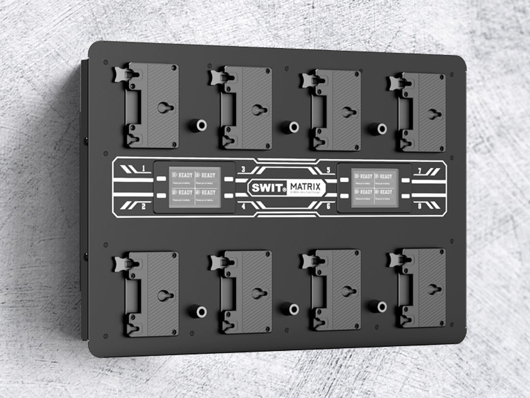 A SWIT MATRIX-A8 egy nagy teljesítményű, többcsatornás fali töltő, amelyet kifejezetten a Gold-mount rendszert használó professzionális videó- és broadcast akkumulátorokhoz terveztek. 8 egyidejű töltési csatornát kínál, amelyek mindegyike 16,8 V egyenárammal akár 6 amper áramot is képes leadni, így csatornánként 100 wattos ultragyors töltési sebességet biztosít. Ez a nagy teljesítmény jelentősen lerövidíti a igényes produkciós környezetben általában használt akkumulátorok újratöltési idejét.