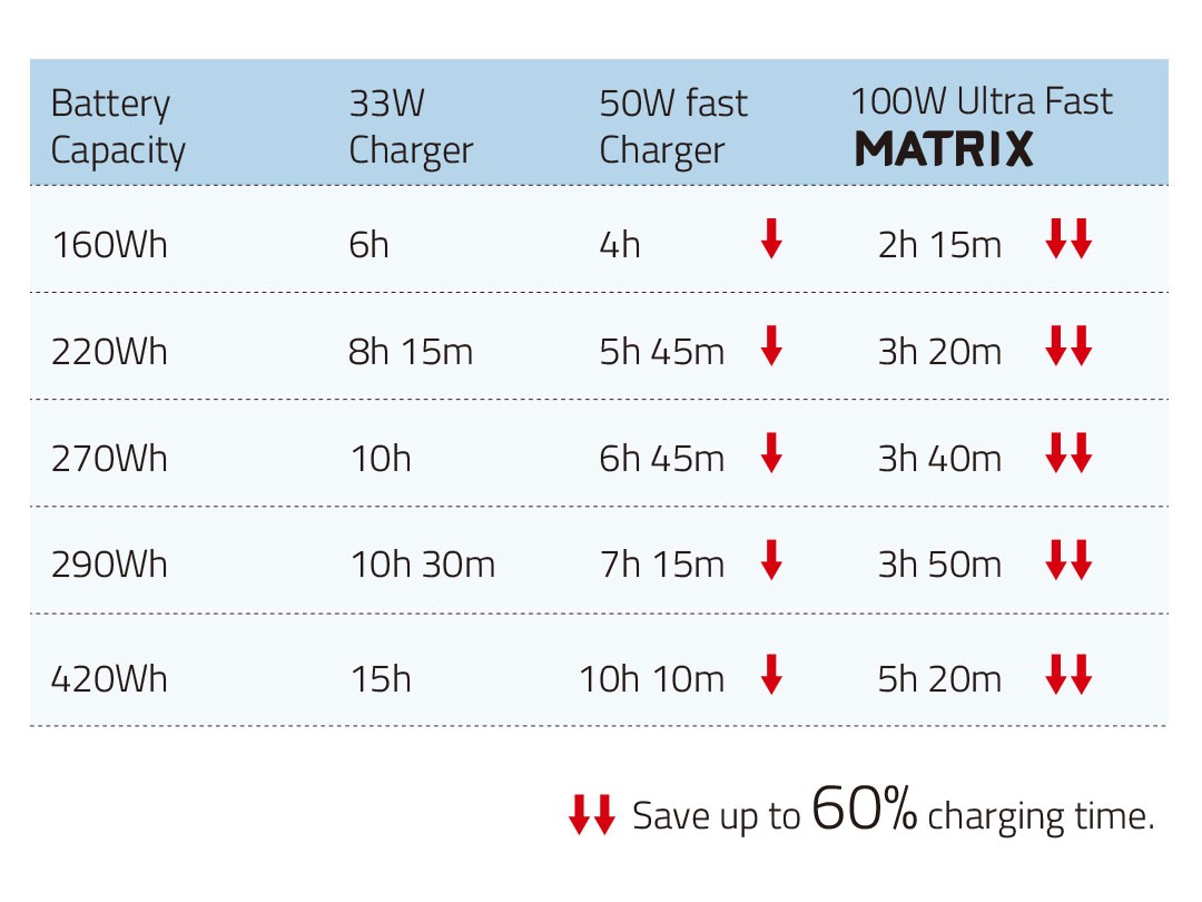 A MATRIX-A8 intelligens felismerési technológiát alkalmaz, amely automatikusan érzékeli, hogy a csatlakoztatott akkumulátorok támogatják-e a gyors töltést. Ennek megfelelően szabályozza a kimeneti áramot, hogy optimalizálja az akkumulátorok állapotát és a töltési sebességet. Ez biztosítja a kompatibilitást a Gold-mount akkumulátorok széles skálájával, meghosszabbítva az akkumulátorok élettartamát és maximalizálva a töltő hatékonyságát.