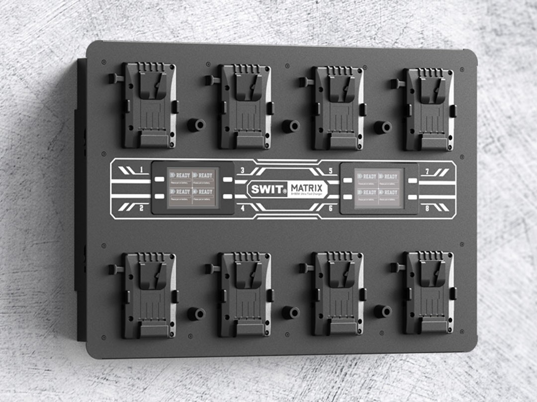 A SWIT MATRIX-S8 egy professzionális minőségű, 8 csatornás, egyidejű V-mount fali töltő, amelyet televíziós állomások, bérbeadó cégek és produkciós létesítmények számára terveztek, amelyek nagy kapacitású akkumulátor-töltési megoldásokat igényelnek. Ez az ultranagy sebességű töltő csatornánként 100 W teljesítményt nyújt, és mind a 14,4 V, mind a 28,8 V V-mount akkumulátorformátumokat támogatja, így ideális választás a különböző akkumulátorállományokat kezelő üzemek számára. A készülék úgy lett kialakítva, hogy jelentősen csökkentse a töltési időt, miközben intelligens energiagazdálkodással megőrzi az akkumulátorok állapotát.
