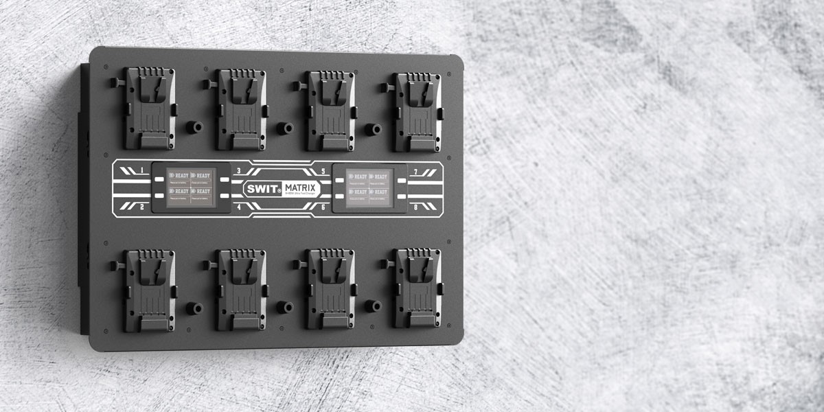 Támogassa produkcióját a SWIT MATRIX-S8 8 csatornás fali töltővel. Ez a rendkívül gyors töltő csatornánként egyszerre maximum 6 A áramot biztosít, és mind a 14 V-os, mind a 28 V-os V-mount akkumulátorokat (PC-W461S) támogatja. Ideális nagy igénybevételt jelentő filmforgatásokhoz és stúdióberendezésekhez, kompakt kialakítása és hatékony töltése biztosítja, hogy berendezése mindig készen álljon. Számos V-mount akkumulátor megbízható, gyors töltése egyetlen, nagy teljesítményű egységből.