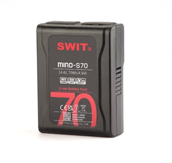 A SWIT MINO-S70 egy kompakt, 70 Wh-s, zsebben hordozható V-mount akkumulátor, amelyet kézi kamerákhoz, monitorokhoz és stabilizátorokhoz terveztek, és amely minimális súly mellett megbízható 100 W teljesítményt biztosít.