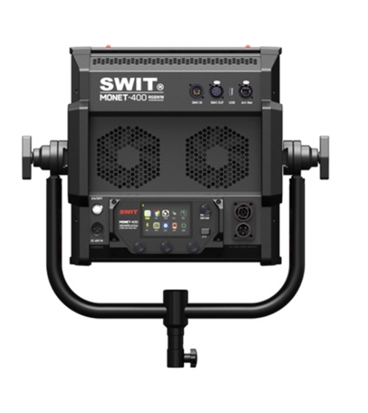 A professzionális munkafolyamatokhoz tervezett MONET-400 PowerCON TRUE1 AC bemenettel és átkötéssel, 48 V DC XLR bemenettel, erős szűrő rögzítéssel és gyorsan felszerelhető, nyitott felületű kiegészítőkkel rendelkezik. A diffúzor táblával és 4 szárnyú barn doorral, valamint opcionális kiegészítőkkel, például méhsejt rácsokkal, softboxokkal és rúdon működtetett járművel szállítják, ami még nagyobb sokoldalúságot biztosít.