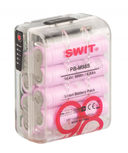A Swit PB-M98S egy miniatűr 98Wh kapacitású V-Mount akkumulátor.