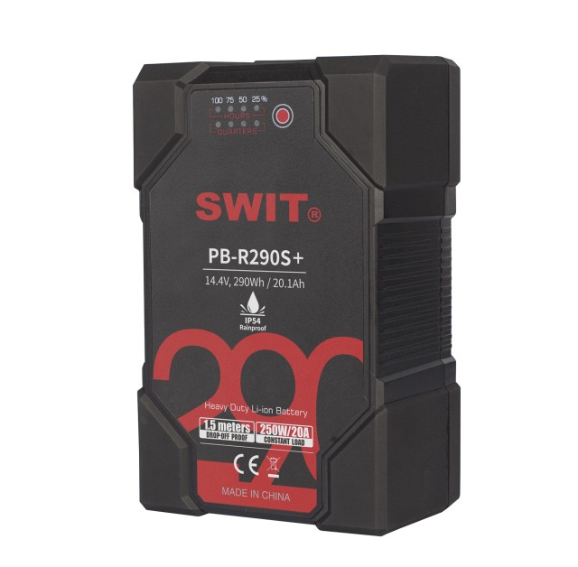 A PB-R290S+ egy 290Wh kapacitású V-mount akkumulátor, Cine és ENG kamerákhoz, kettős házzal, nagy teherbírású, zárt szerkezettel, IP54-es esővédelemmel, 1,5 m-es leejtésállósággal. Az akkumulátor támogatja a nagy terhelést, a gyors töltést és a digitális energiainformációs kijelzőt a terepi alkalmazásokhoz.