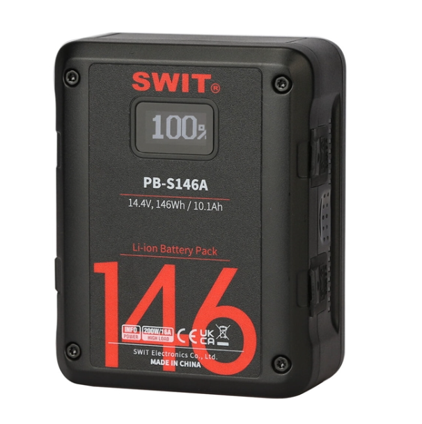 A SWIT PB-S146A egy kompakt, 146 Wh-s, többcsatlakozós digitális fényképezőgép-akkumulátor, amelynek négyzet alakú kialakítása filmkamerákhoz lett optimalizálva, és amely nagy terhelés mellett 200 W kimeneti teljesítményt biztosít valós idejű üzemidő-figyeléssel.
