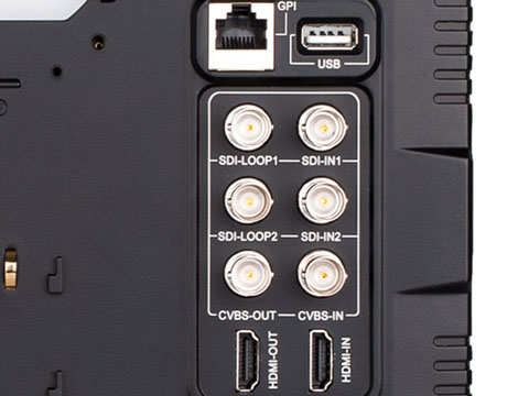 A monitor egy 4-tűs XLR aljzatot biztosít a DC 6,5-24V-os tápellátás bemenetéhez, és rögzíthető V-mount, Gold mount vagy DV akkumulátorlemezre