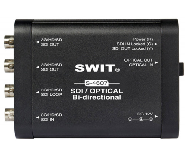 A SWIT S-4607 egy nagy teljesítményű, hordozható, kétirányú 3G-SDI-egymódos száloptikai átalakító. Hosszú távú SDI-átvitelre tervezték, támogatja az egyidejű SDI-száloptikai és száloptikai-SDI átalakítást, forrócsere-képes optikai modulokkal rendelkezik, és robusztus alumínium házban kapható, könnyű telepítési lehetőségekkel.
