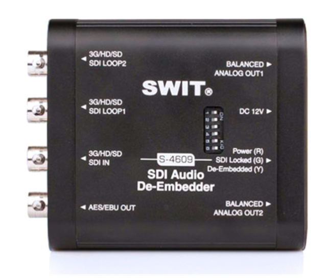 Az S-4609 SDI Audio De-Embedder egy hordozható mini konverter, amely legfeljebb két csatorna hangot von ki 3 Gb/s-os SDI jelekből, és AES/EBU és kiegyensúlyozott 6,35 mm-es audio kimeneteket kínál professzionális sugárzáshoz és terepi produkcióhoz.