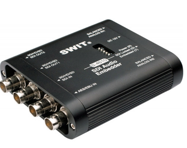 A SWIT S-4610 egy kompakt és strapabíró SDI audio beágyazó, amely digitális és analóg hangot integrál SDI jelekbe, megbízható 3G/HD/SD-SDI kimeneteket biztosítva professzionális terepi produkciókhoz és sugárzási alkalmazásokhoz.