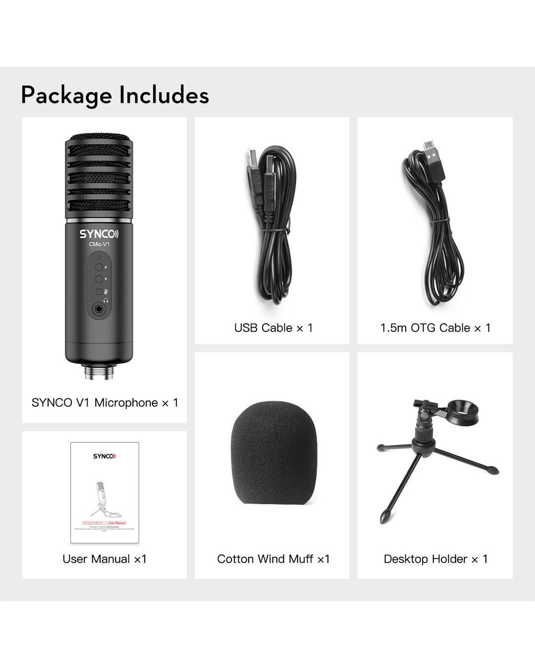 A CMic-V1 a Synco első nagymembrános elektret mikrofonja USB tápegységgel/kimenettel. Széles, kiegyensúlyozott frekvenciaválaszt kínál a 20 Hz-20 kHz-es tartományban és briliáns hangzást a sokoldalú használathoz otthoni stúdióban, élő közvetítésben stb. A beépített elektronika USB-kimenetet, fejhallgató-meghallgatást (3,5 mm-es jack) és a beépített gombokon keresztül elérhető erősítés- és némításvezérlési funkciókat biztosít. Egy asztali állvány is tartozik hozzá...