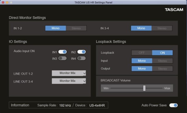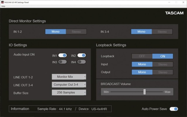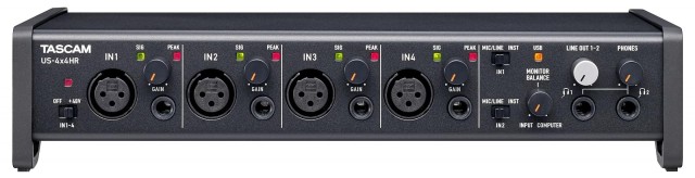 A négycsatornás US-4x4HR a Tascam US-HR nagyfelbontású USB audiointerfészek sorozatának tagja és a népszerű Tascam US-4x4 továbbfejlesztett változata. Négy mikrofon/line bemenetet biztosít, amelyek közül kettő alternatívaként gitár vagy basszusgitár közvetlen bemenetére is használható, négy szimmetrikus line kimenetet, két fejhallgató csatlakozót, valamint MIDI I/O-t Windows vagy Mac számítógépéhez, illetve iPhone vagy iPad készülékéhez*. Ez az interfész ideális például két hangszer és két énekes többsávos felvételéhez, vagy olyan multimédiás produkciókhoz, amelyeknél magasak az egyszerű működés és a stúdióminőségű hangzás követelményei. A mellékelt loopback funkciónak és az Open Broadcaster Software (OBS Studio) támogatásának köszönhetően azonban kétcsatornás podcastok készítéséhez és élő közvetítésekhez is kiváló választás.
