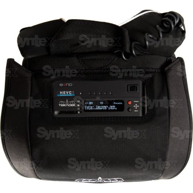 A Teradek Bond 759 HEVC hátizsák a Bond 757 bővítőmodult tartalmazza a Cube 755 kódolóval, a Node Cellular 4G LTE USB modemmel (Európa/Azsia) és a V rögzítőlemezzel.