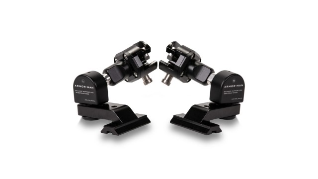 Armorman 3.0 univerzális kardángyűrű adapter. Ha gyűrű alapú kardánnal rendelkezik, az univerzális kardángyűrű-adapterek lehetővé teszik a kardán egyszerű, gyorskioldású megoldást a kardán rögzítéséhez és leválasztásához az Armor Man 3.0 mechanikus karjaihoz. Ezek a fecskefarok-alapú adapterek az Armor Man minden karjára rácsúsznak, majd az univerzális Gimbal gyűrűs adapter bilincsekhez csatlakoznak, hogy megtartsák a gimbalokat. Amikor az Armor Mant a kardánhoz szeretné rögzíteni, csatlakoztassa a karokat a kardán előre beállított bilincseire a működés megkezdéséhez, és amikor le akarja venni a kardánt, nyomja be az adapterek gyorskioldó gombjait, hogy lecsússzon a bilincsekről.