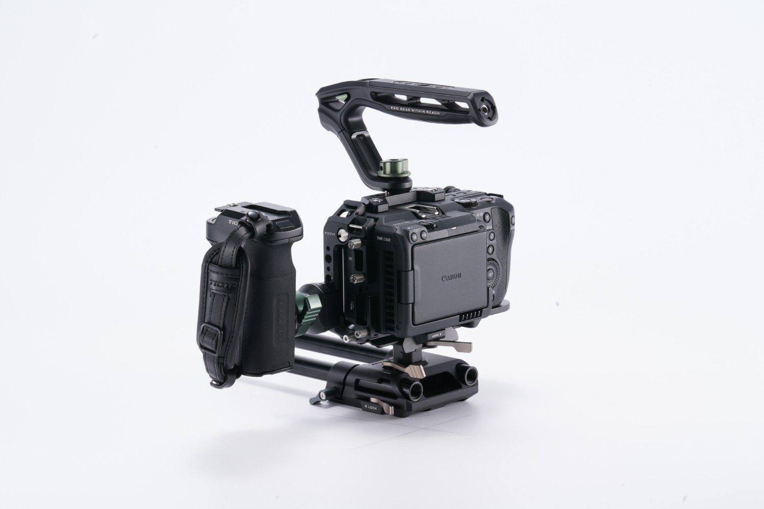 A készlet alapját a teljes kamerakeret képezi, amely a Canon C50 kameraház további védelmét szolgálja, és lehetővé teszi a felhasználók számára, hogy számos videókészítésre specializálódott kiegészítőt rögzítsenek rá. A három érintkezési pont biztonságos rögzítést biztosít, és segít fenntartani a keret stabilitását nagy intenzitású és dinamikus felvételi körülmények…