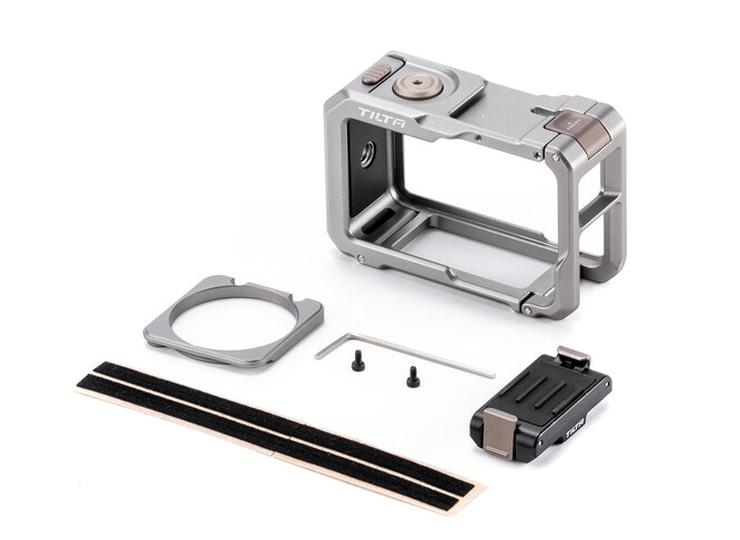 A Tilta TA-T72-A-TG teljes kamerakeret rögzítő alaplemez készlettel (titánszürke) egy komplett, felvételkész moduláris szerelvény a DJI Osmo Action 5 Pro/4/3 kamerákhoz, amely egy védő magnézium-alumínium keretet kombinál kétoldalas gyorskioldó, mágneses Tilta szűrőtartóval, felső hideg cipővel, oldalsó 1/4"-20 menettel és mágneses gyorskioldó alaplappal, amely az aljára vagy oldalára rögzíthető – mindez elegáns titánszürke kivitelben a maximális tartósság és stílus érdekében.