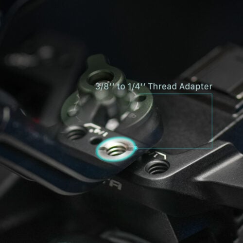 A mellékelt 1/4-20″ felső fogantyú bővíti a kezelési lehetőségeket, különösen alacsony szögű felvételek esetén. Ez a fogantyú további rögzítési lehetőségeket is kínál, például 1/4″-20 menetes rögzítést és hideg cipőfoglalatot, amely külső monitorhoz ideális.