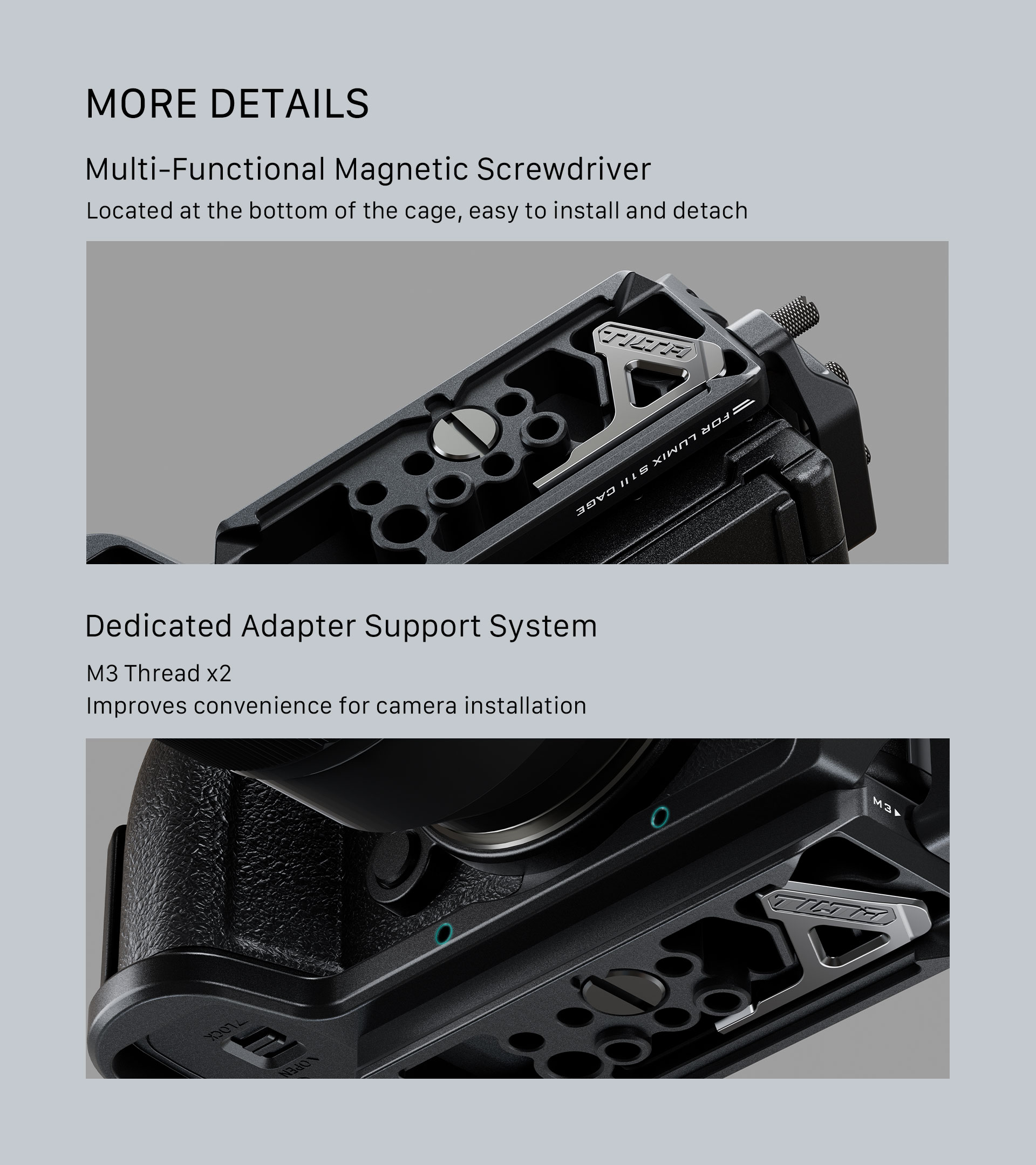 A készlet alapját a teljes kamerakeret képezi, amely védelmet nyújt és bővíti a S1R II, Lumix S5 II, S5 IIX és G9 II felszerelési lehetőségeit.