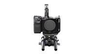A Sony zászlóshajója, a 8K BURANO számára kifejezetten kifejlesztett Tilta ESR-T18-B-V Pro Kit a már amúgy is kiváló képességű mozi kamerát teljesen moduláris, vállra szerelhető/gimbal/stúdióban használható munkagéppé alakítja, anélkül, hogy felesleges tömeget adna hozzá. A formához illeszkedő keret megőrzi az eredeti ARRI rozetta pozíciókat, így a Sony gyári vezérlőkar tökéletesen működik, miközben több tucat 1/4"-20 és 3/8"-16 menetes (pozicionáló csapokkal), elülső/felső/oldalsó 15 mm-es rúdbilincsekkel és egy gyorskioldó 15 mm-es LWS alaplemezzel (ARRI szabványos fecskefarkú) egészül ki. A mellékelt V-Mount akkumulátorlemez kiterjedt tápellátást biztosít (14,8 V P-Tap, 24 V és 14,8 V 3-tűs Fischer, 2-tűs LEMO, 65 W USB-C PD és 6-tűs DC bemenet) lámpák, monitorok, vezeték nélküli fókuszkövetés stb. számára. Forgatható EVF-tartó, magasságállítható oldalsó lemez, multifunkcionális felső fogantyú és kompakt szerszámkészlet teszi teljessé ezt a forgatásra kész csomagot, amelyben világszerte a legkiválóbb bérbeadó cégek és operatőrök bíznak.