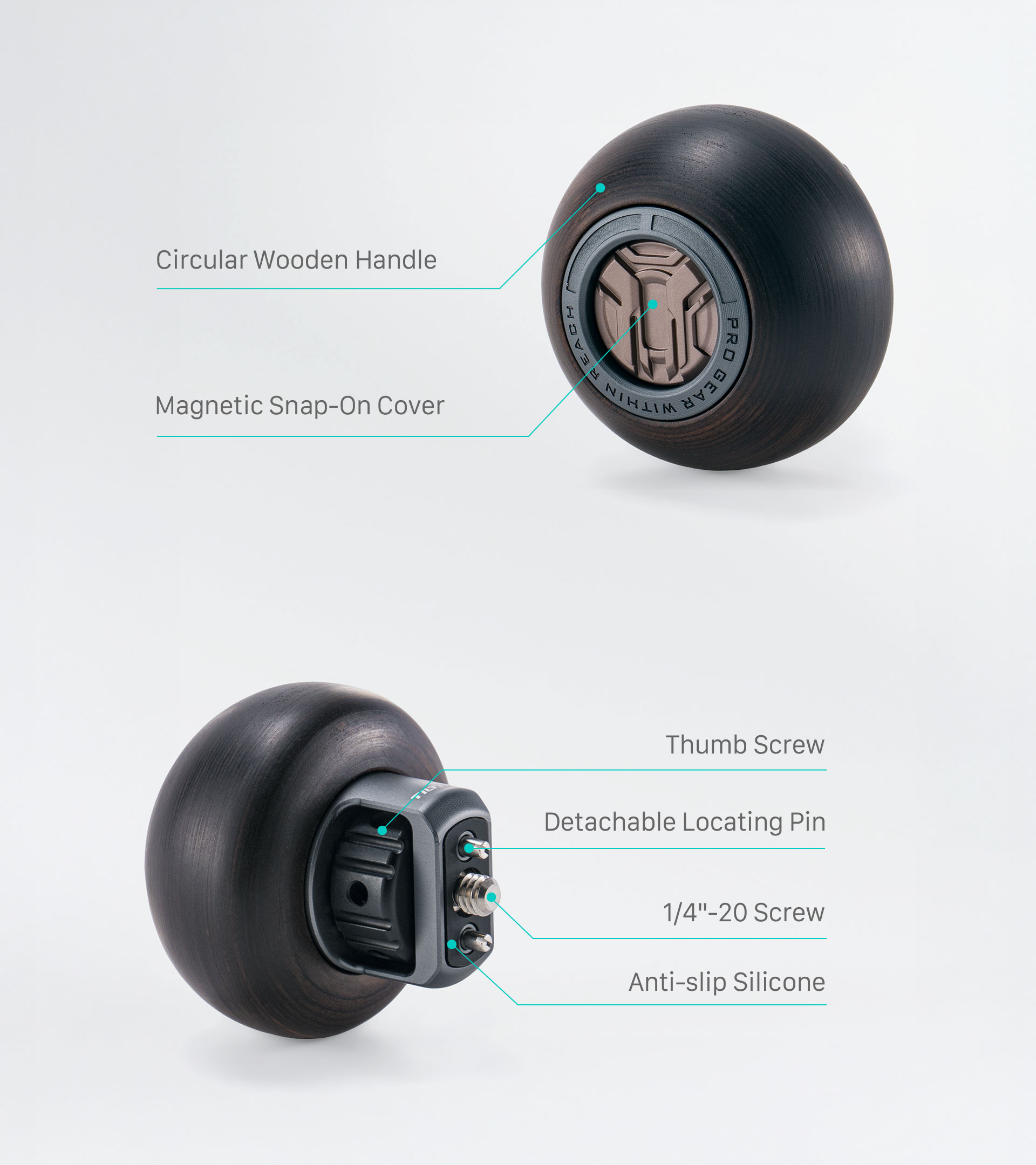 Bemutatjuk a Tilta kör alakú fa fogantyút (1/4″-20), amely könnyű és zökkenőmentes kiegészítője kamerájának.