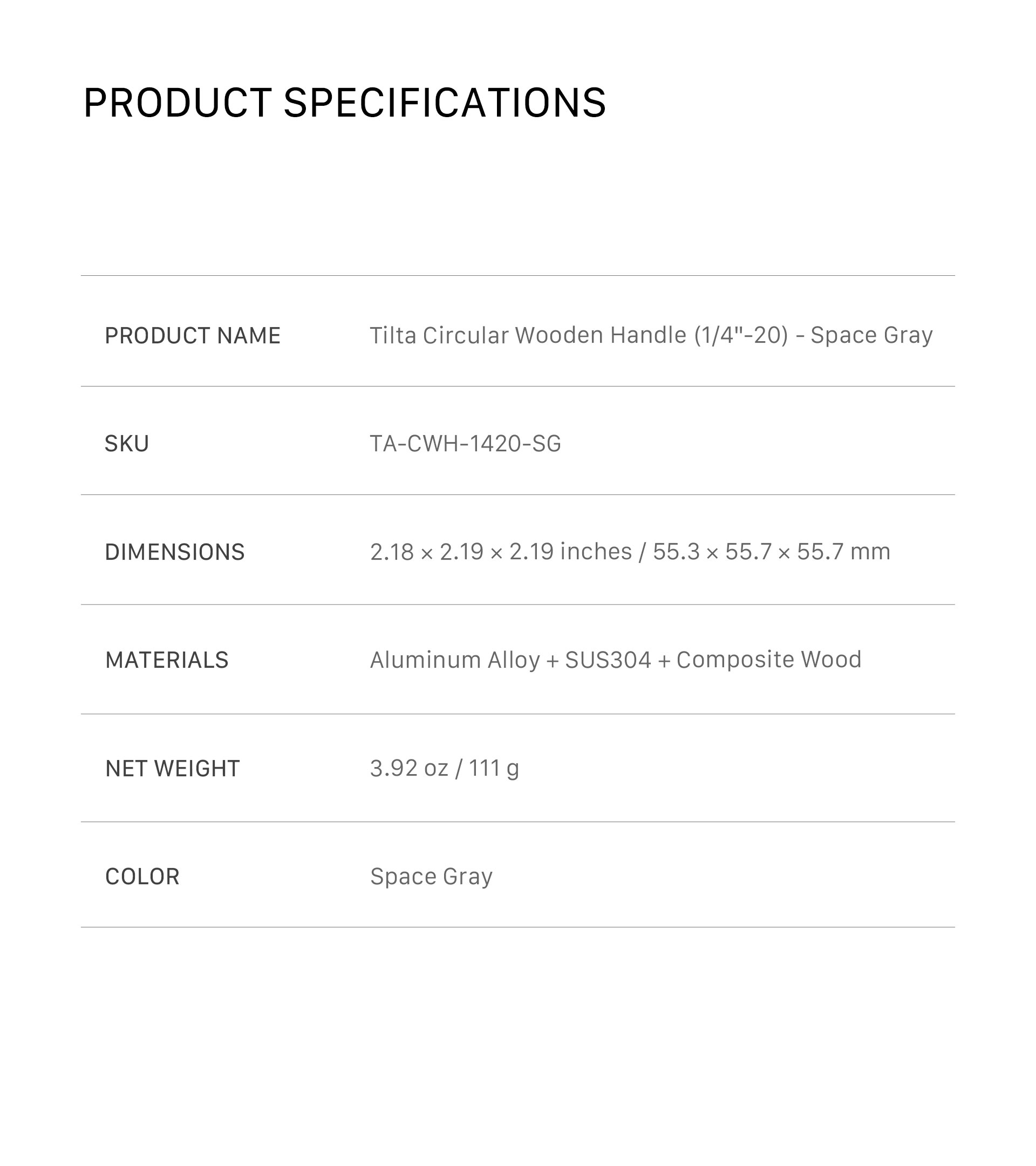 Bemutatjuk a Tilta kör alakú fa fogantyút (1/4″-20), amely könnyű és zökkenőmentesen illeszkedik a fényképezőgép felszereléséhez. Precíziós kivitelezésű fogantyúk minőségi fából készülnek, és CNC-marással megmunkált, kiváló minőségű alumíniumötvözetből vannak összeállítva, ami biztosítja a tartósságot és a sima felületet.