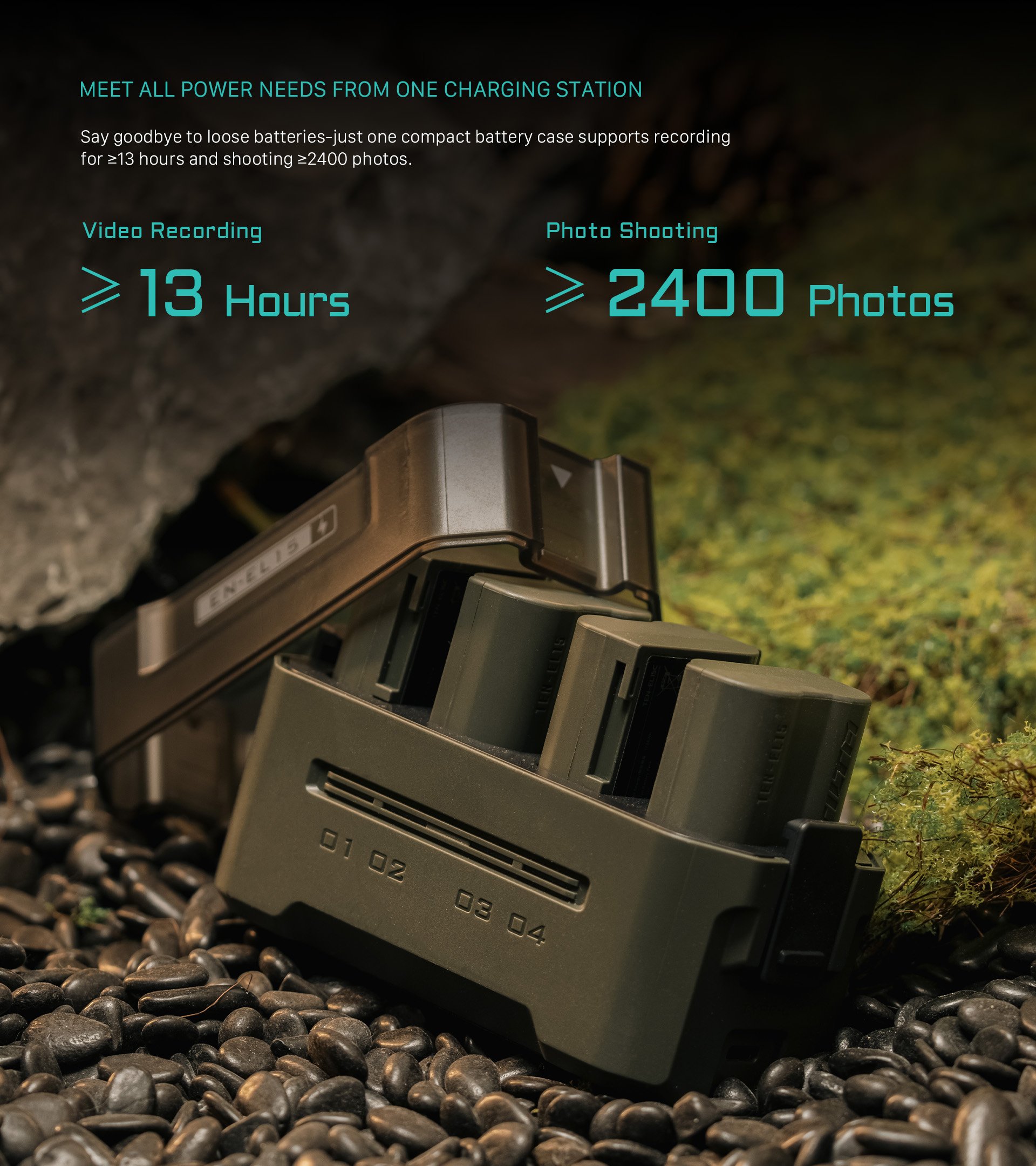 Négy EN-EL15C akkumulátor teljes feltöltésére képes, így a felhasználók akár 13 órányi videofelvételre vagy 2400 fotó elkészítéséhez elegendő energiára lesznek képesek, ami tökéletes a hosszú fotózásokhoz.