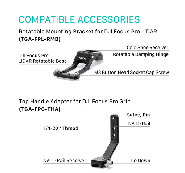 A Tilta TGA-FP-EK bővítő készlet a DJI Focus Pro számára növeli a rögzítés rugalmasságát és a kezelhetőséget azáltal, hogy egy forgatható rögzítő konzolt, felső fogantyú adaptert és NATO sín rögzítést egyesít egy átfogó megoldásban. Kifejezetten a DJI Focus Pro rendszerhez tervezett készlet lehetővé teszi a felhasználók számára, hogy fogantyúkat, kiegészítőket és felső rögzítésű konfigurációkat integráljanak professzionális stabilitással és pontossággal.